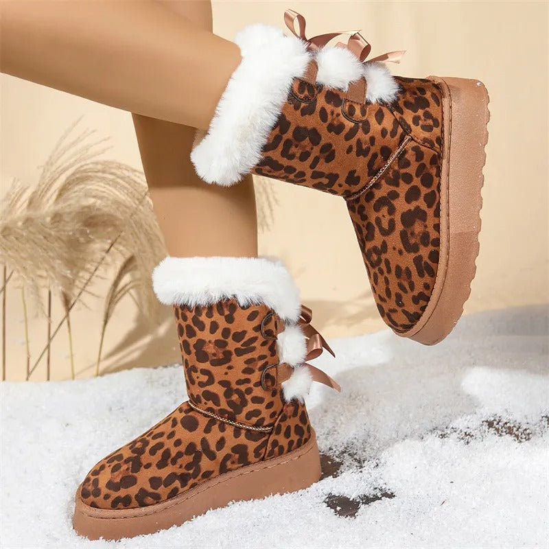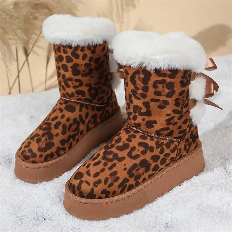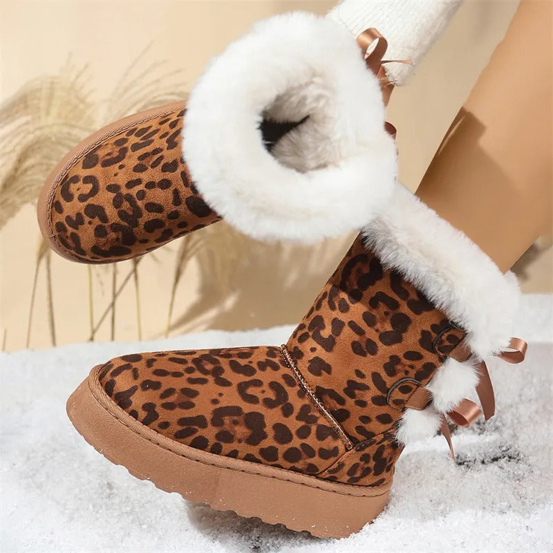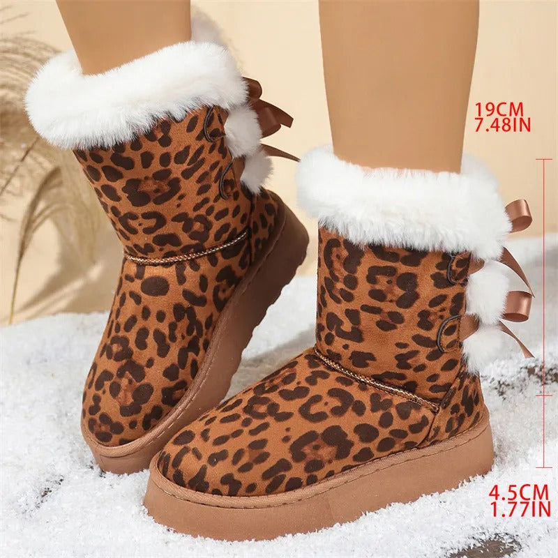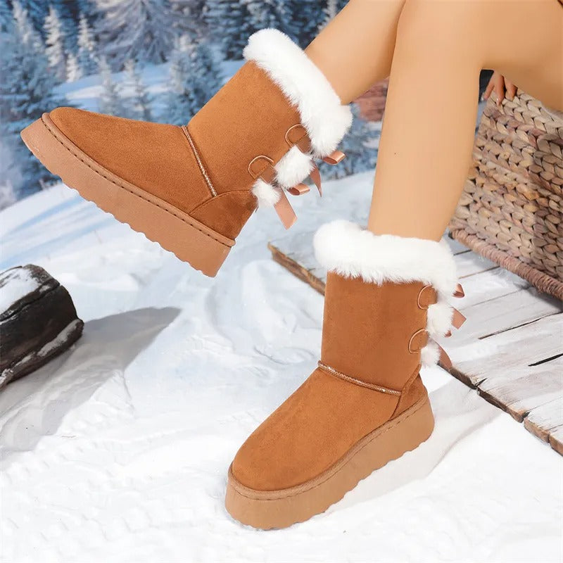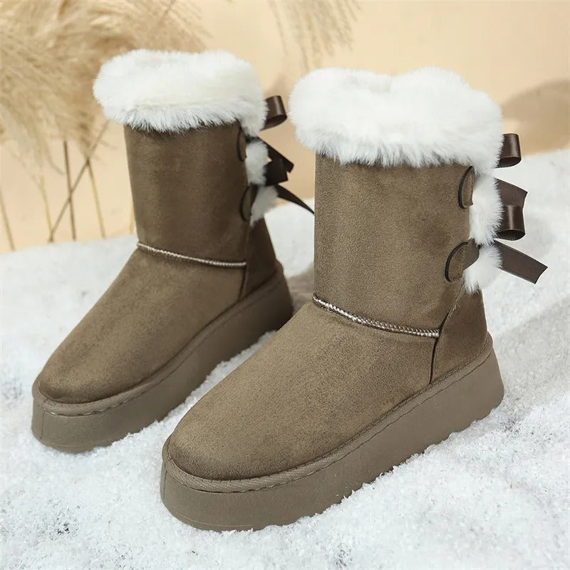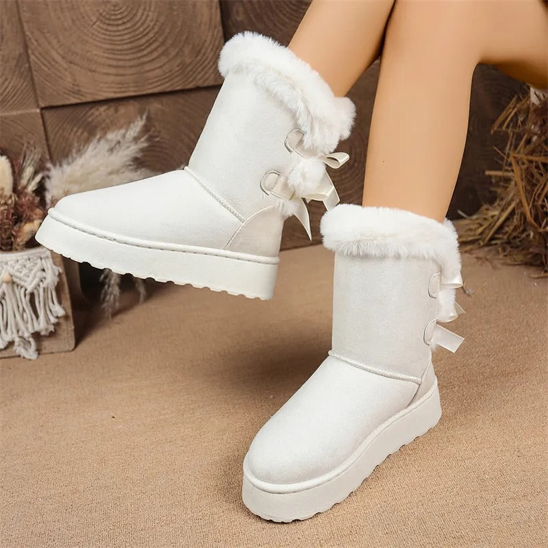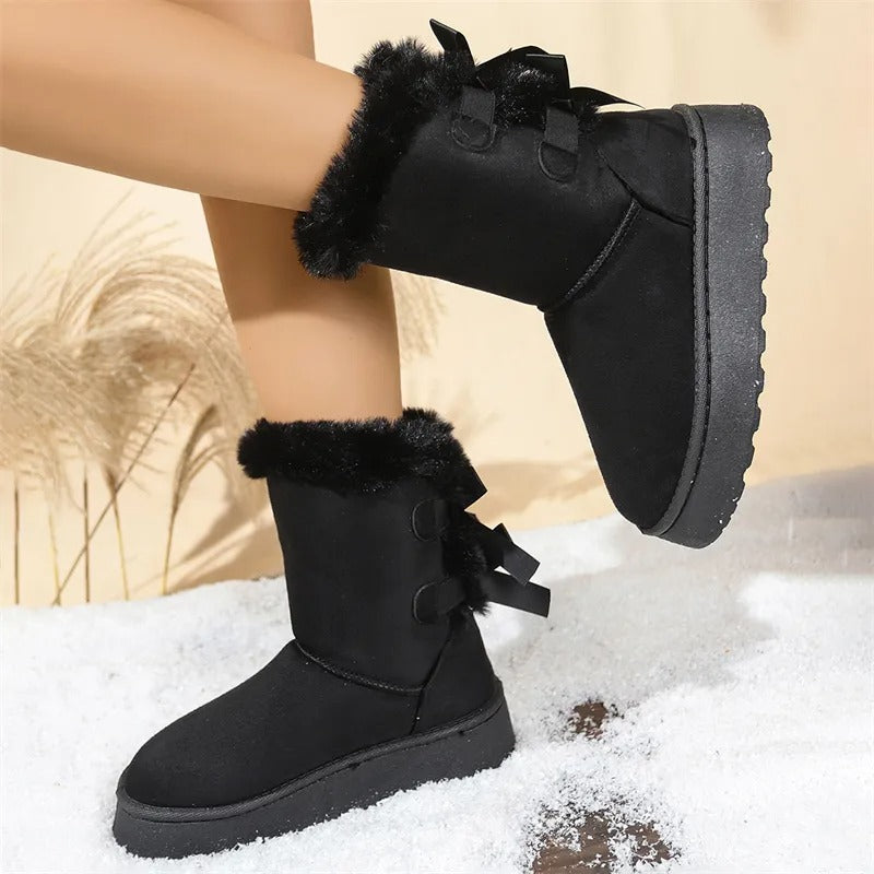 [Boxs Gift] Women's Velvet Bow Snow Boots, Anti-Slip Winter Half-Boots